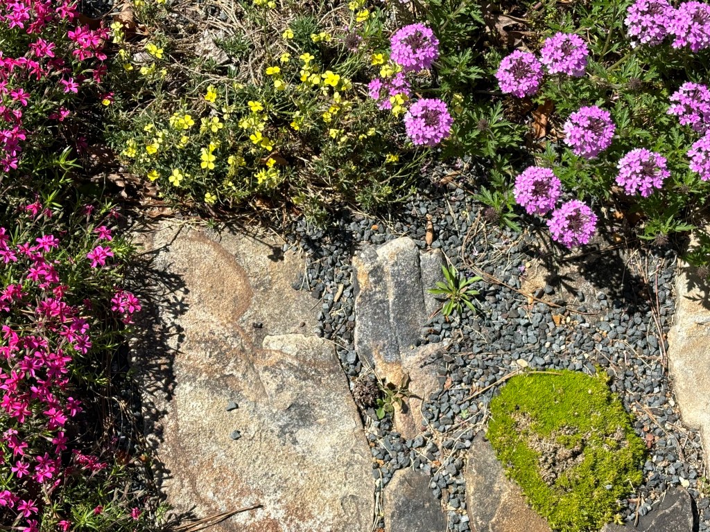 The buddleia ( yellow ‘honeycombe”) are now installed – the project took about 3 weeks to complete. The hardest part was living with the mess of “ in process” – but that was also the spur to not let it drag on for too long.